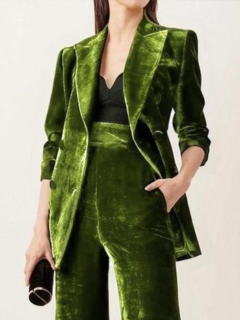 Urban Double Bbreasted Plain Velvet Blazer Green | Women Blazers