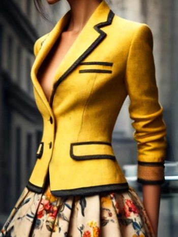 Urban Split Joint Contrast Stitching Lapel Collar Blazer Yellow | Women Blazers