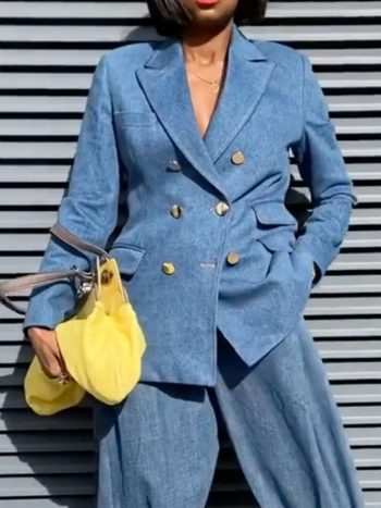 Plain Pocket Stitching Urban Regular Sleeve Blazer Blue | Women Blazers