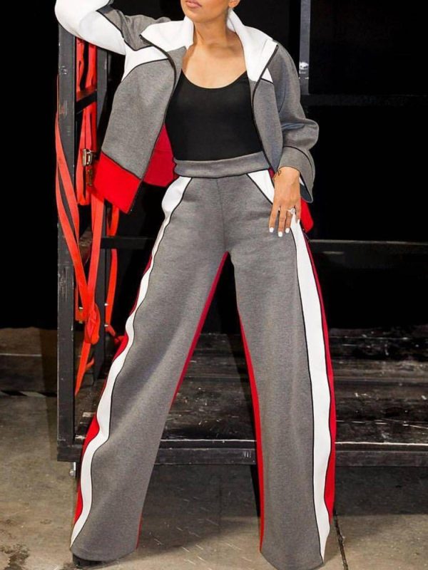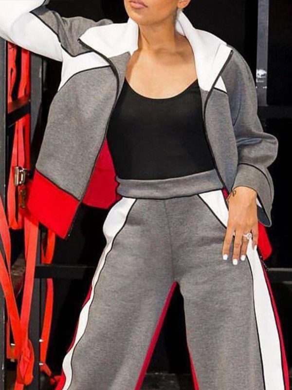 Casual Loose Raglan Sleeve Stand Collar Color Block Jacket As Picture | Women Jackets