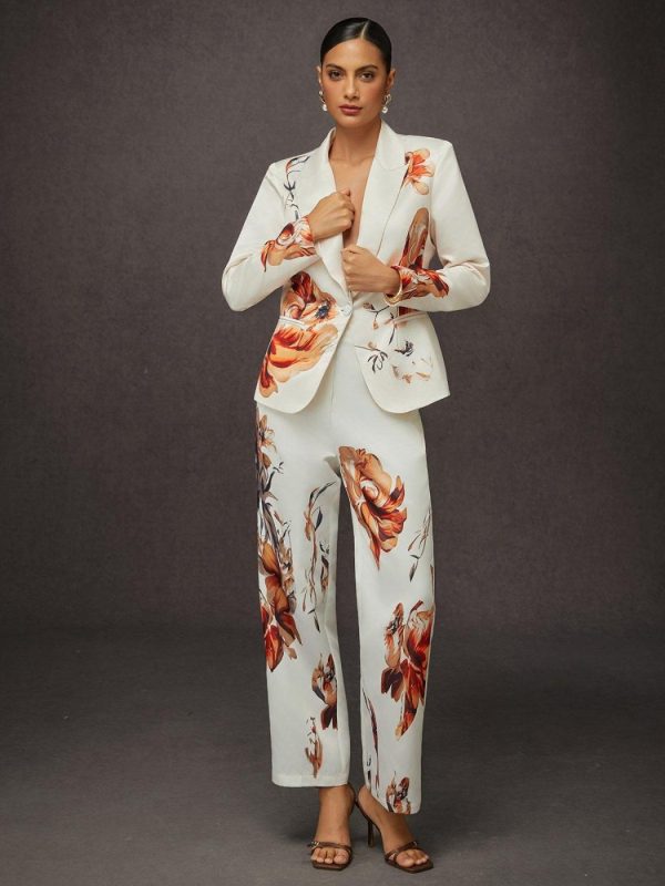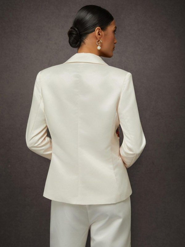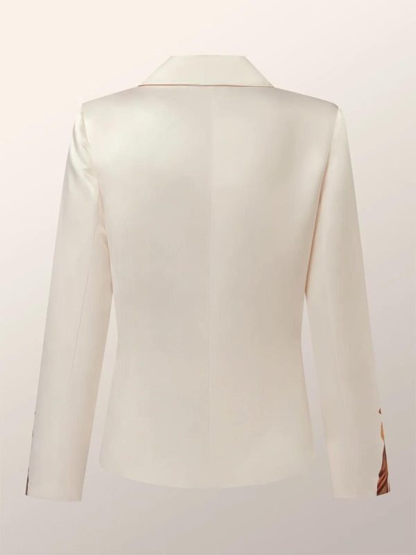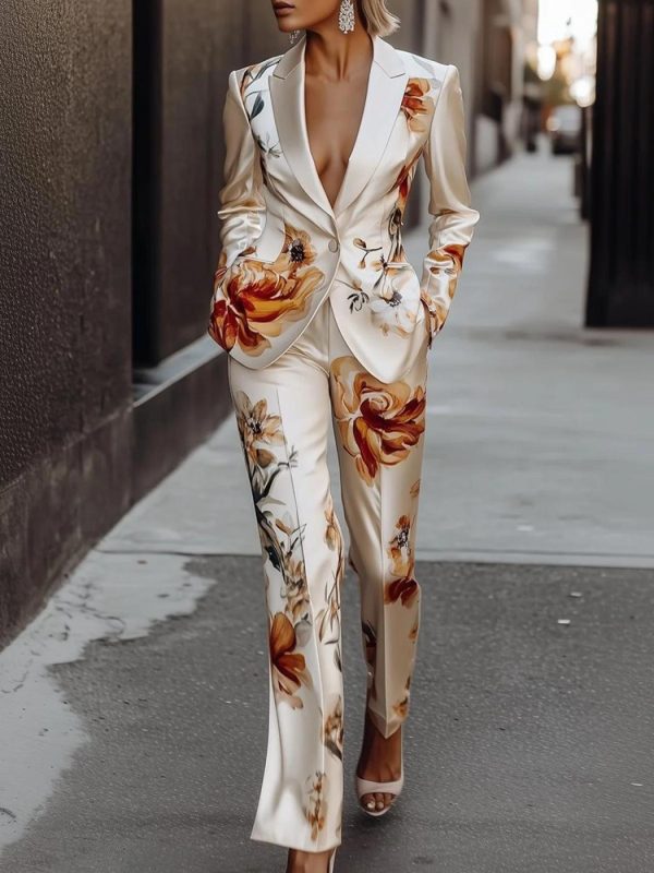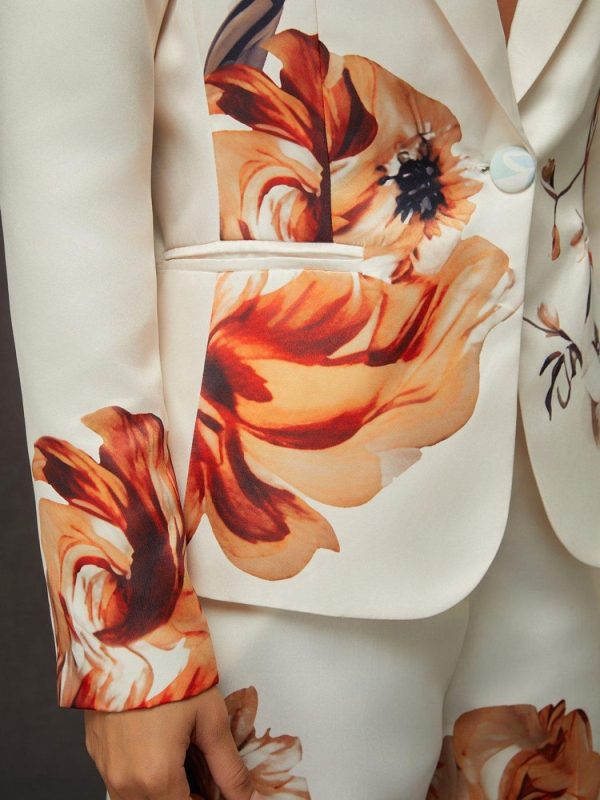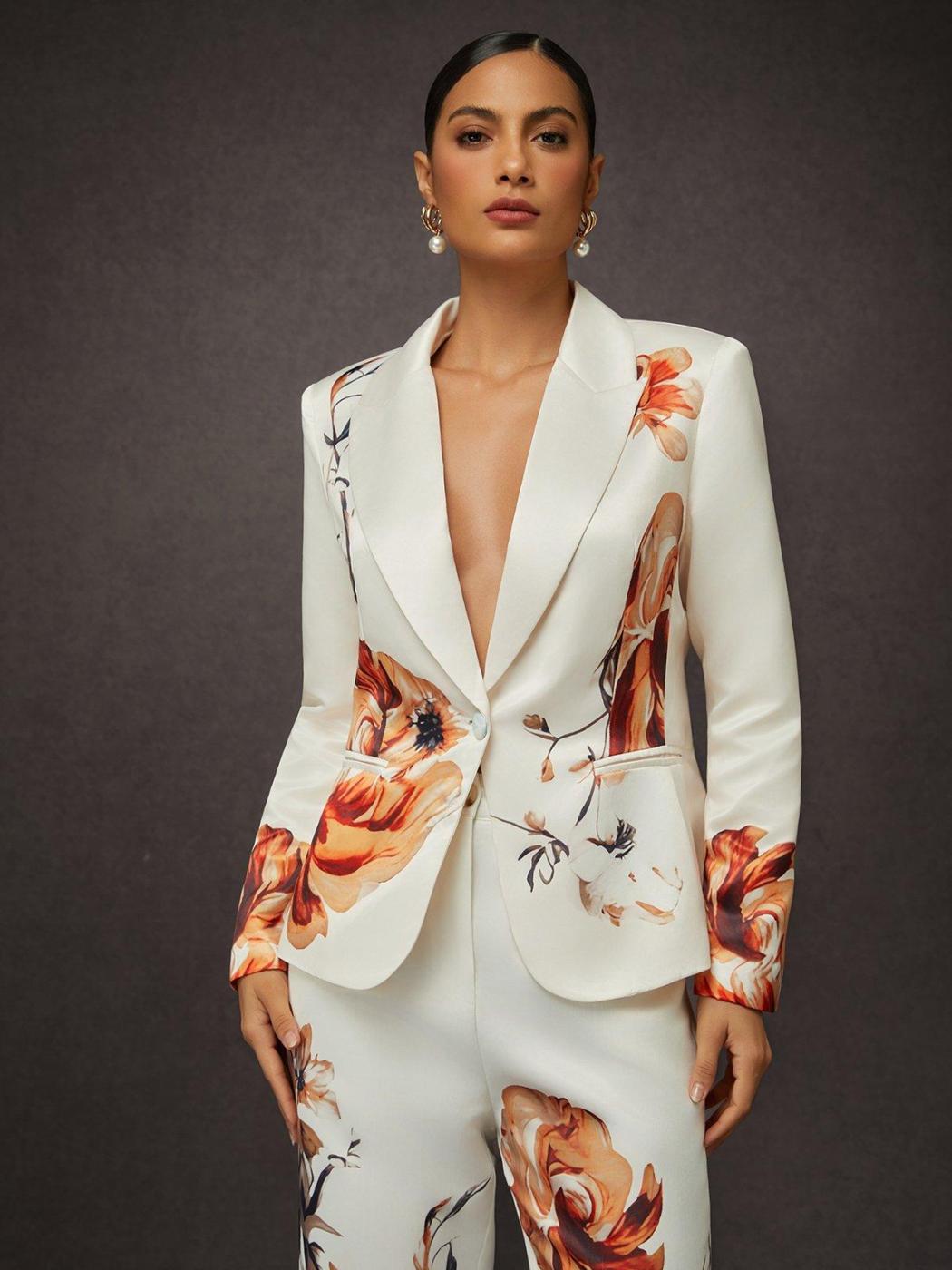 Crafted From Lustrous Satin, This Floral Blazer Blends Subtle Luxury With Eye-Catching Elegance. Featuring Dual Pockets For Functionality, Its Refined Silhouette Suits Formal Events, Dinner Parties, And Sophisticated Everyday Wear.