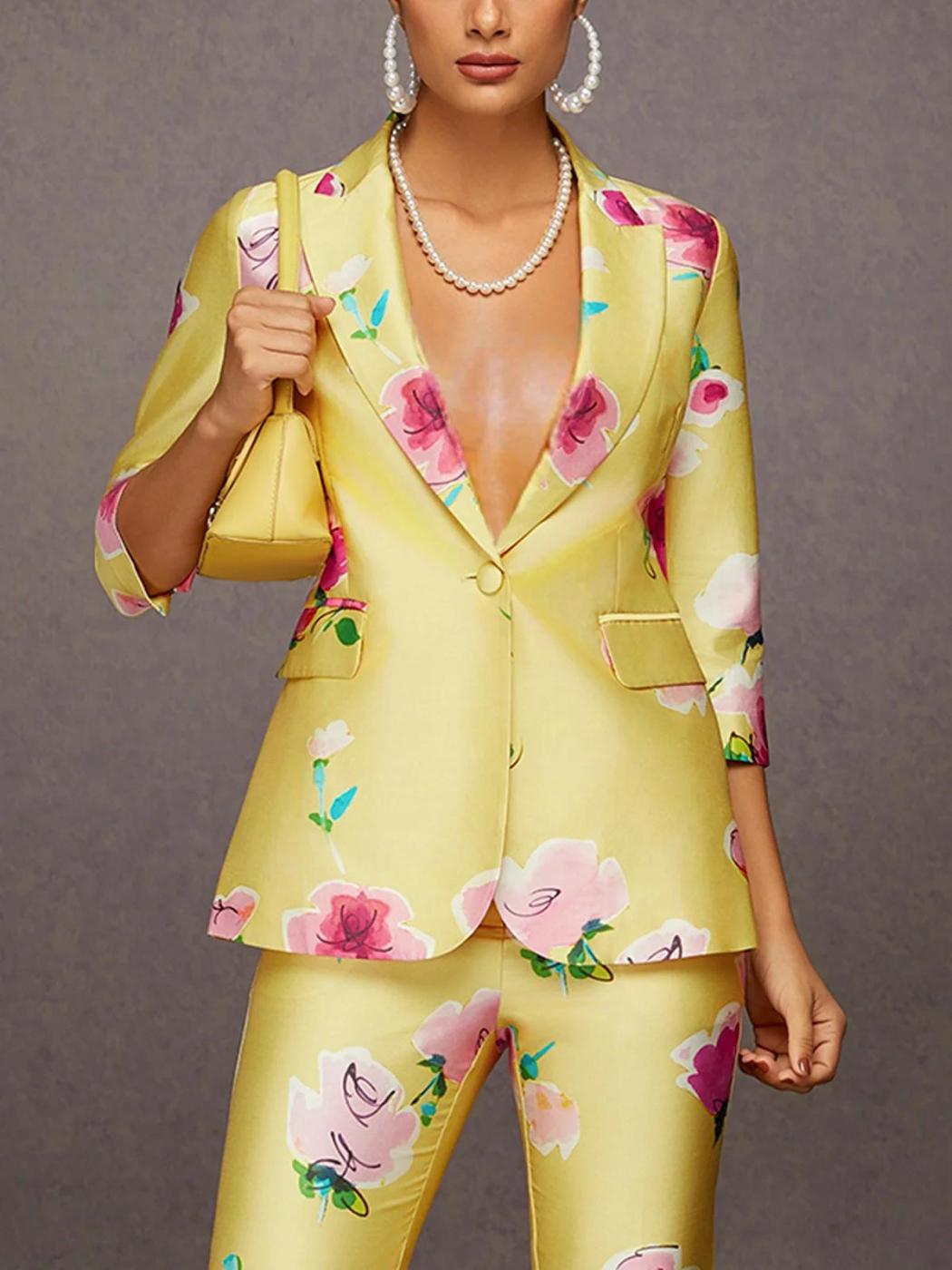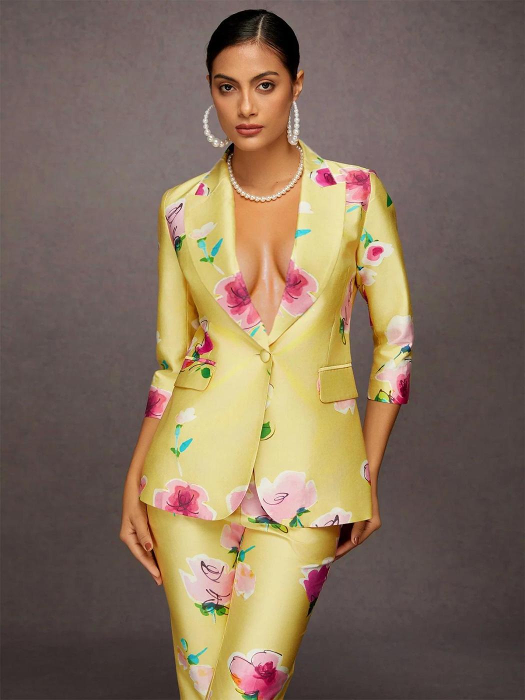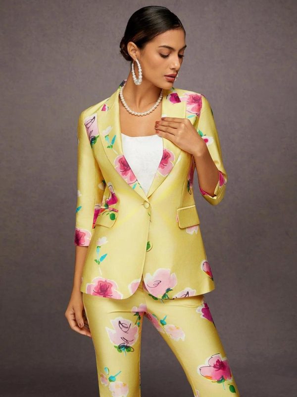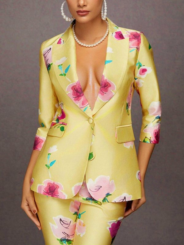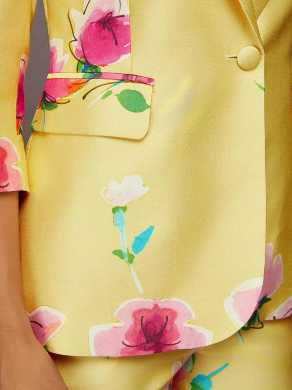 This Summer Essential Features A Vibrant Floral Print, Adding A Fresh Touch To A Classic Blazer. The Short Sleeves And Full Lining Ensure Comfort And Style. Perfect For Warm-Weather Events, This Blazer Is A Must-Have.