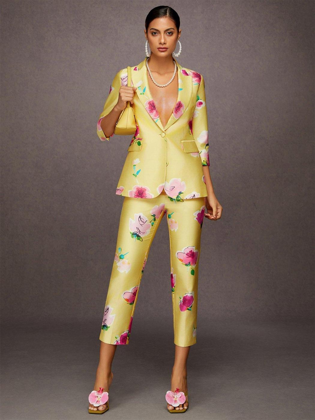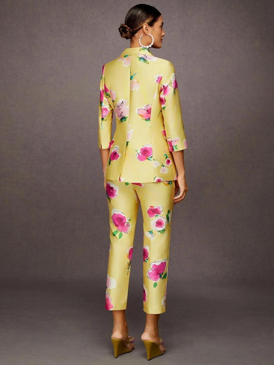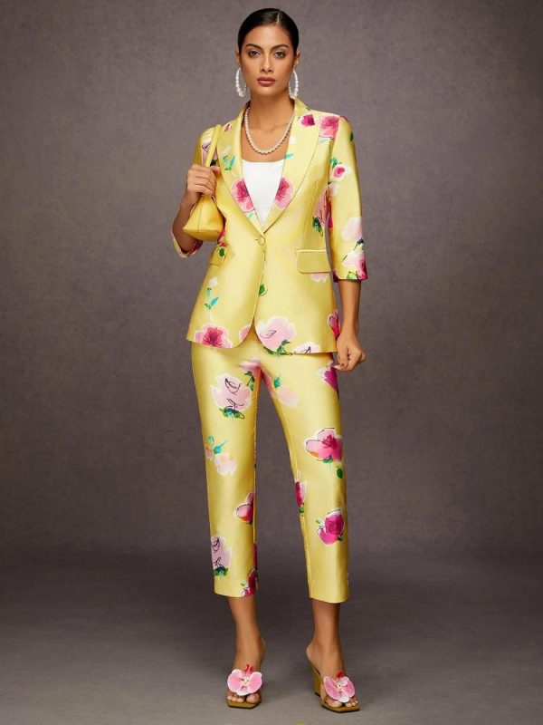This Summer Essential Features A Vibrant Floral Print, Adding A Fresh Touch To A Classic Blazer. The Short Sleeves And Full Lining Ensure Comfort And Style. Perfect For Warm-Weather Events, This Blazer Is A Must-Have.