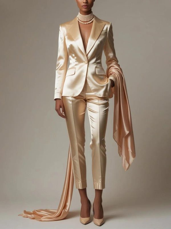 This Elegant Satin Blazer Features A Classic Lapel Collar And Full Lining For Structure And Comfort—Perfect For Upscale Events, Cocktail Hours, And St…