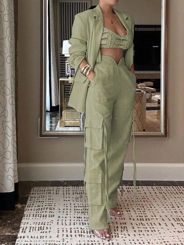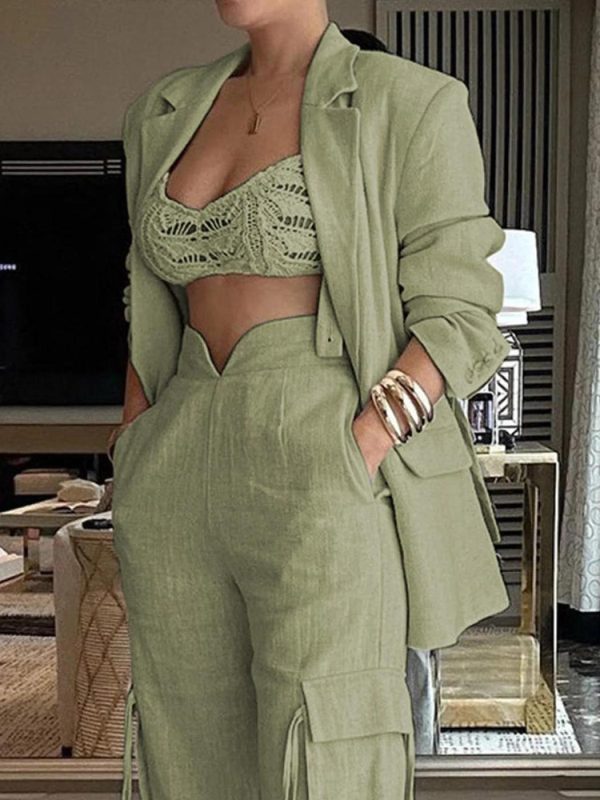 Indispensable For The Summer, This Blazer, When Paired With Matching Cargo Pants, Curates An Elegant, Transit-Friendly Outfit, Making Your Commute As Stylish As It Is Comfortable.