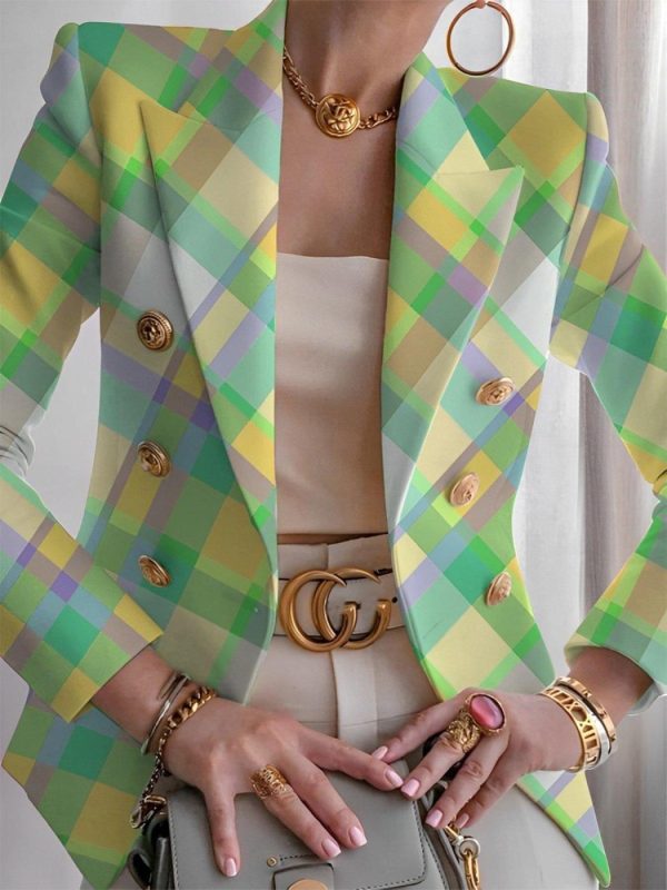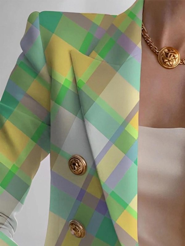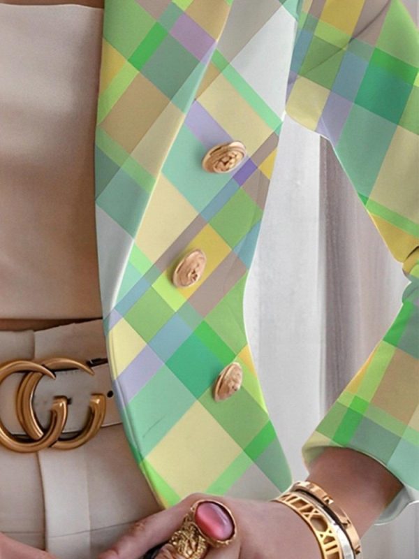 Embrace The Season With This Refreshing Plaid Blazer. Featuring A Classic Lapel Collar And Timeless Fit, It Adds A Touch Of Urban Chic To Any Outfit. Perfect For Layering In Spring And Summer, This Piece Effortlessly Elevates Your Style.